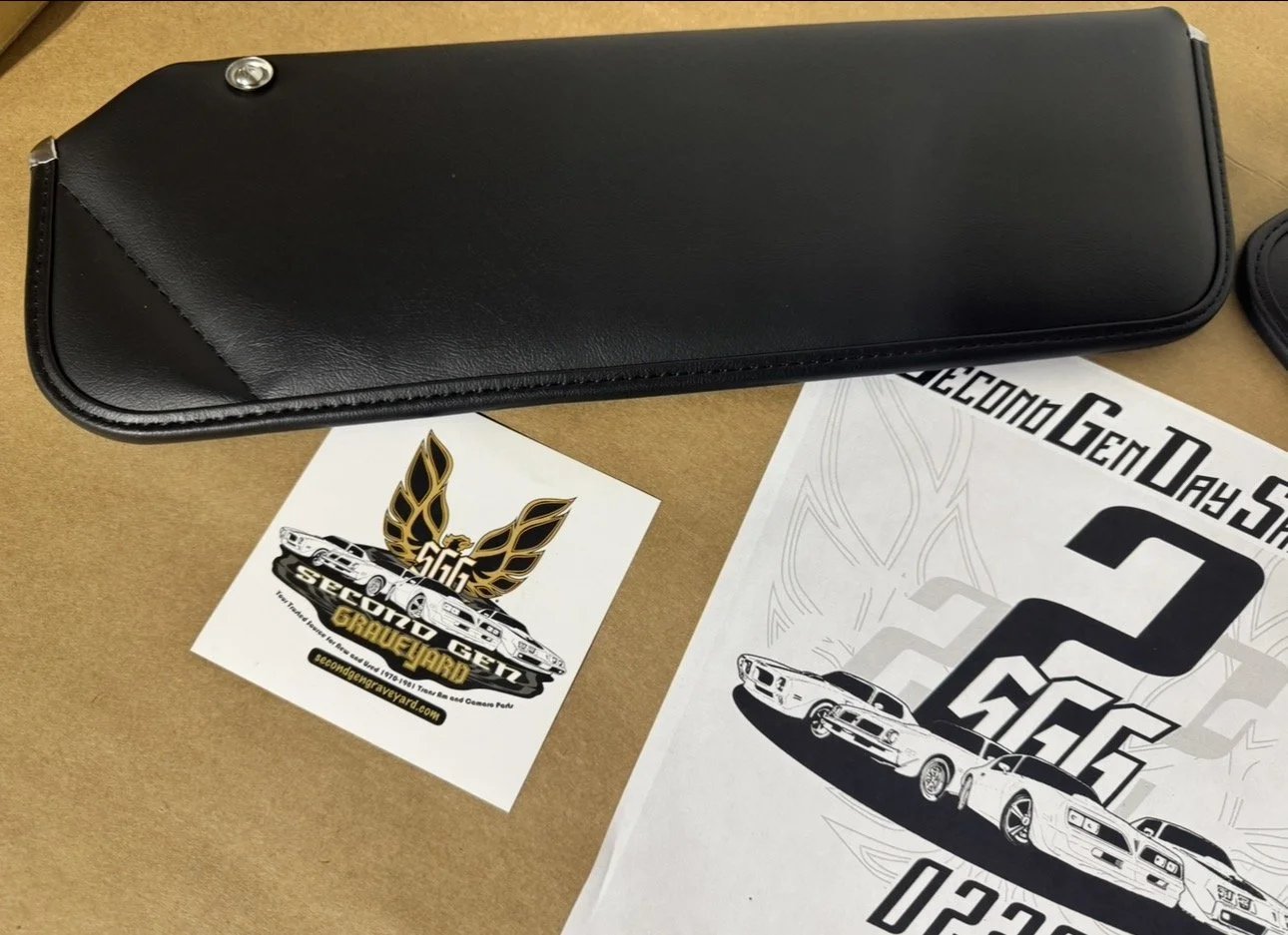 New reproduction black vinyl sunvisors from PUI. Madrid grain